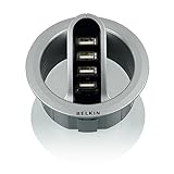 Nearly all your mobile gadgets plug in to your computer through USB. The Front-Access In-Desk USB Hub presents four angled ports for the quickest way to plug in cameras and flash drives, while saving your invaluable computer-desk space. The Hub easily fits into a 3-inch-round opening on your desk or other surface, and connects directly to your computer with the included USB cable. Note: If your desk does not have a pre-drilled hole in it, you can drill one yourself using a 3-inch hole saw (requires separate purchase, not from Belkin). Package Includes . Front-Access In-Desk USB Hub . Mounting Ring . Power Adapter . USB 2.0 Cable . User Manual